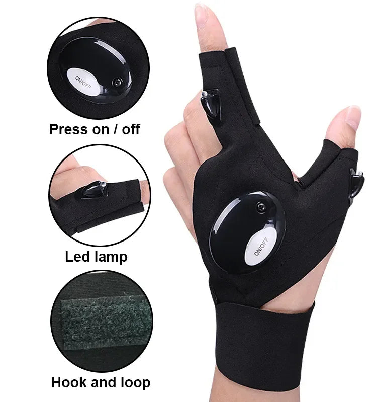Każda rękawica jest wyposażona w dwie jasne diody LED umieszczone na kciuku i palcu wskazującym, które zapewniają precyzyjne oświetlenie podczas wykonywania szczegółowych zadań przy słabym oświetleniu.